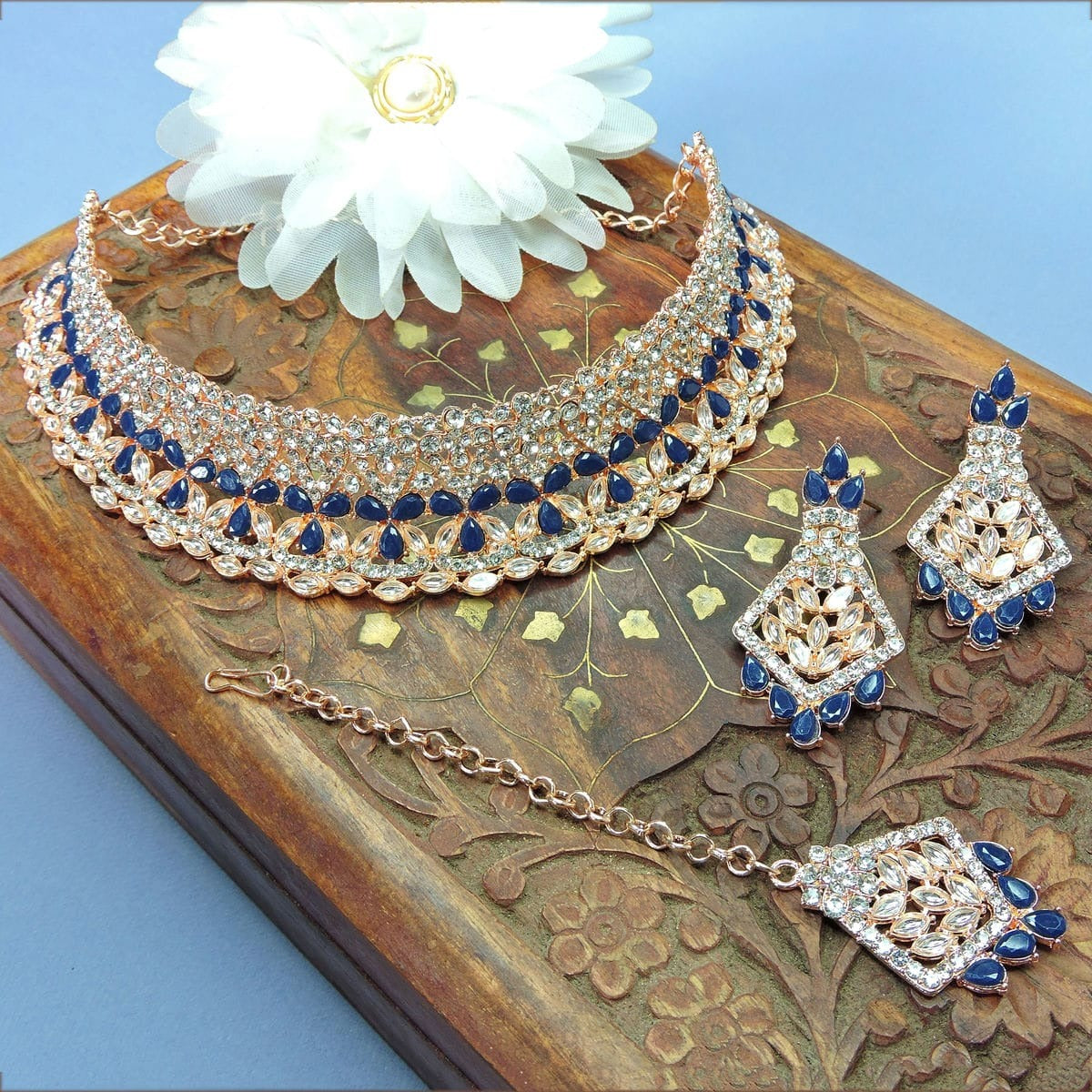 Alloy Choker Necklace Set In Blue NCNS12510246