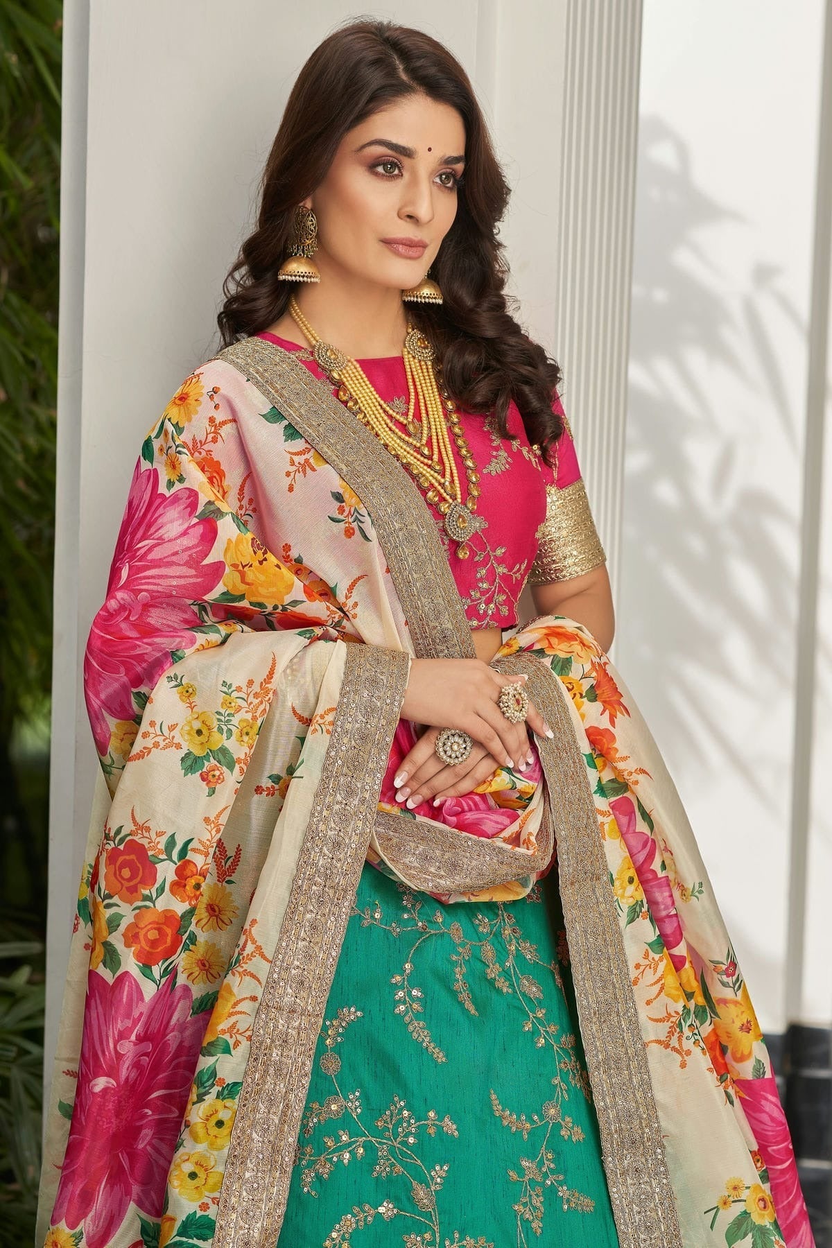 Turn heads in this stunning lehenga choli made with Green. Available in elegant Art Silk, the set includes a lehenga, blouse, and dupatta. Perfect for weddings, receptions, and grand occasions.