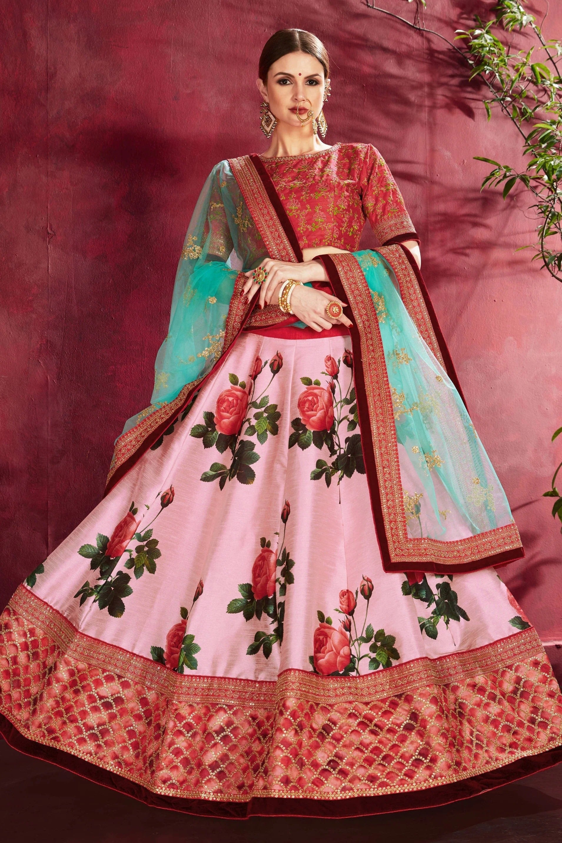 Turn heads in this stunning lehenga choli made with Banglori Silk. Available in elegant Baby Pink, the set includes a lehenga, blouse, and dupatta. Perfect for weddings, receptions, and grand occasions.