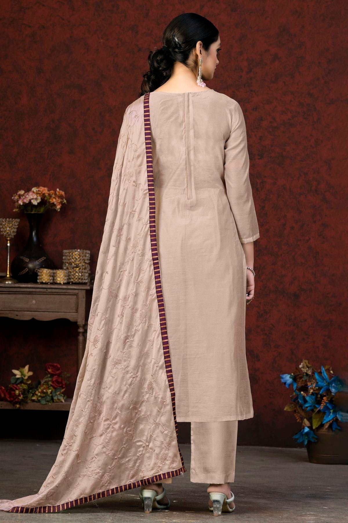 Grace meets comfort in this suit set designed with Modal Chanderi. Offered in Baby Pink, this set includes a stylish kurta, bottom, and dupatta. Ideal for festive gatherings, weddings, or daily wear.