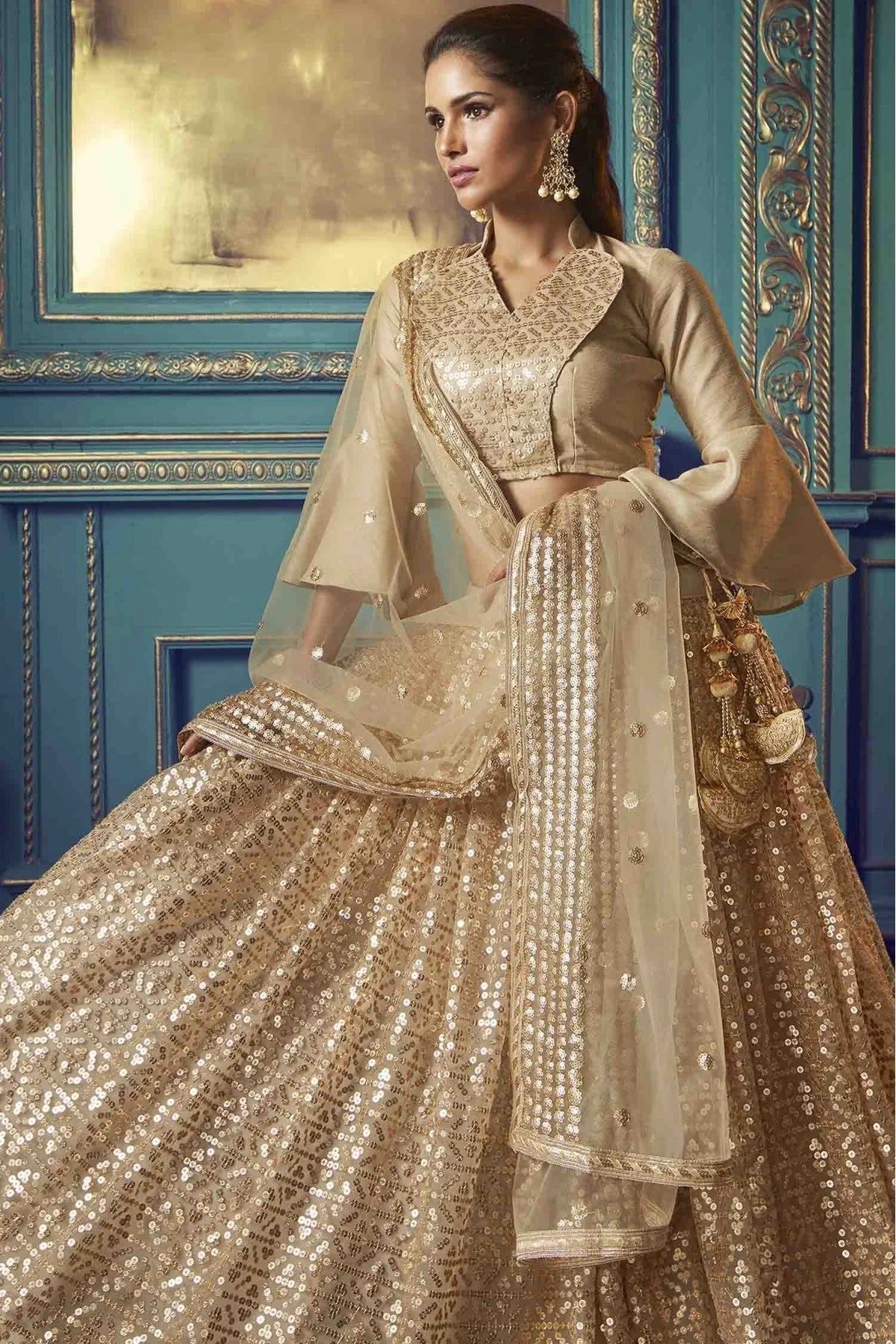 Turn heads in this stunning lehenga choli made with Soft Net. Available in elegant Beige, the set includes a lehenga, blouse, and dupatta. Perfect for weddings, receptions, and grand occasions.