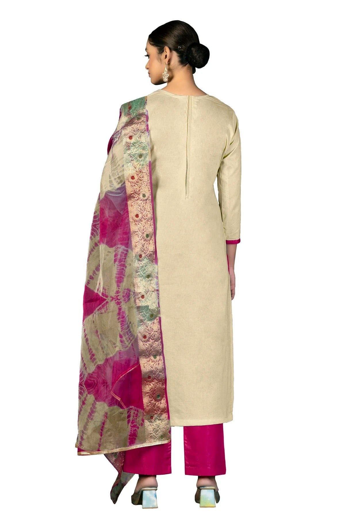 Beige Unstitched Cambric Cotton Straight Suit NCUS11610306