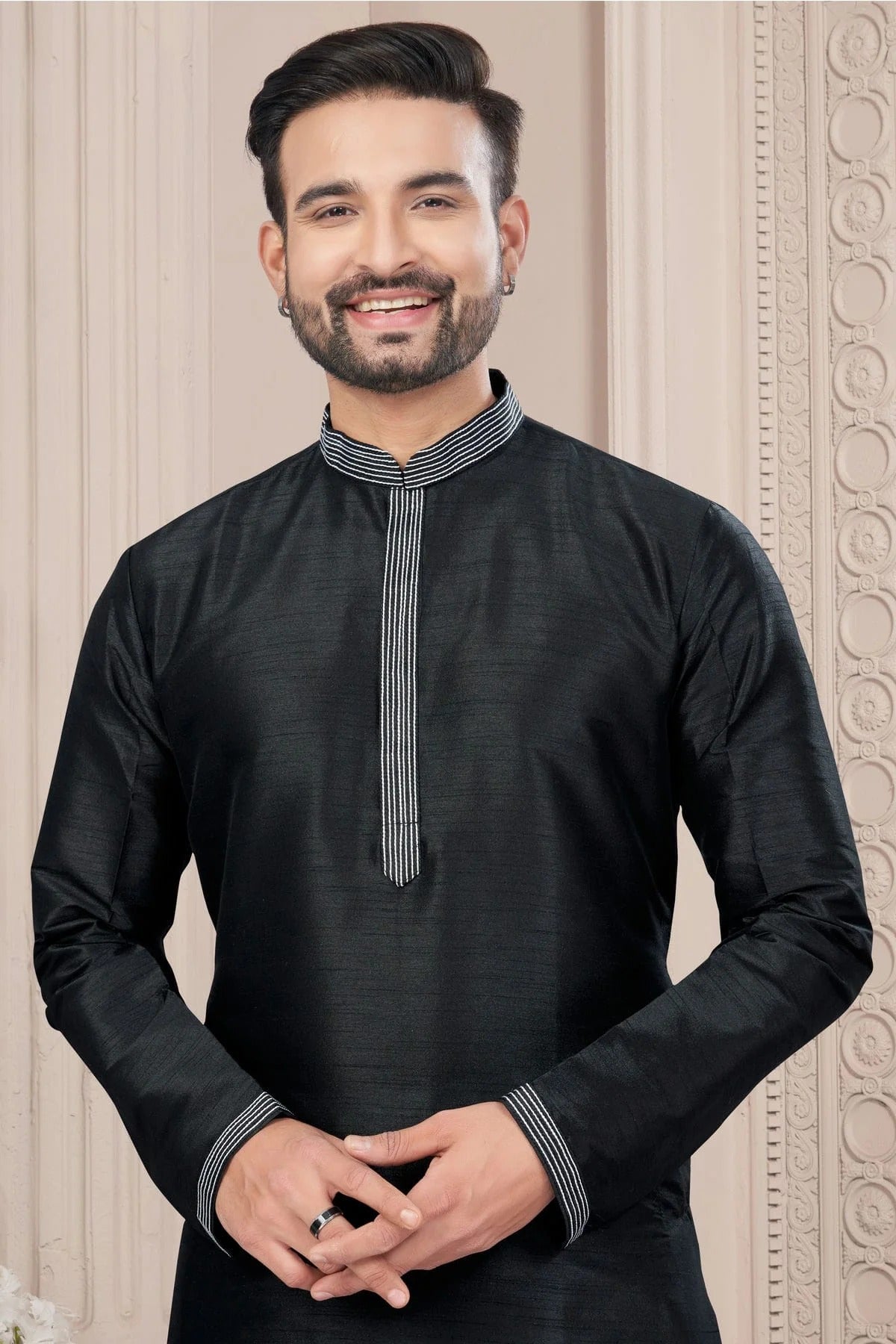 Redefine ethnic style with this mens wear made and decorated with Black. Available in classy 34, it’s perfect for weddings, pujas, and festive occasions.