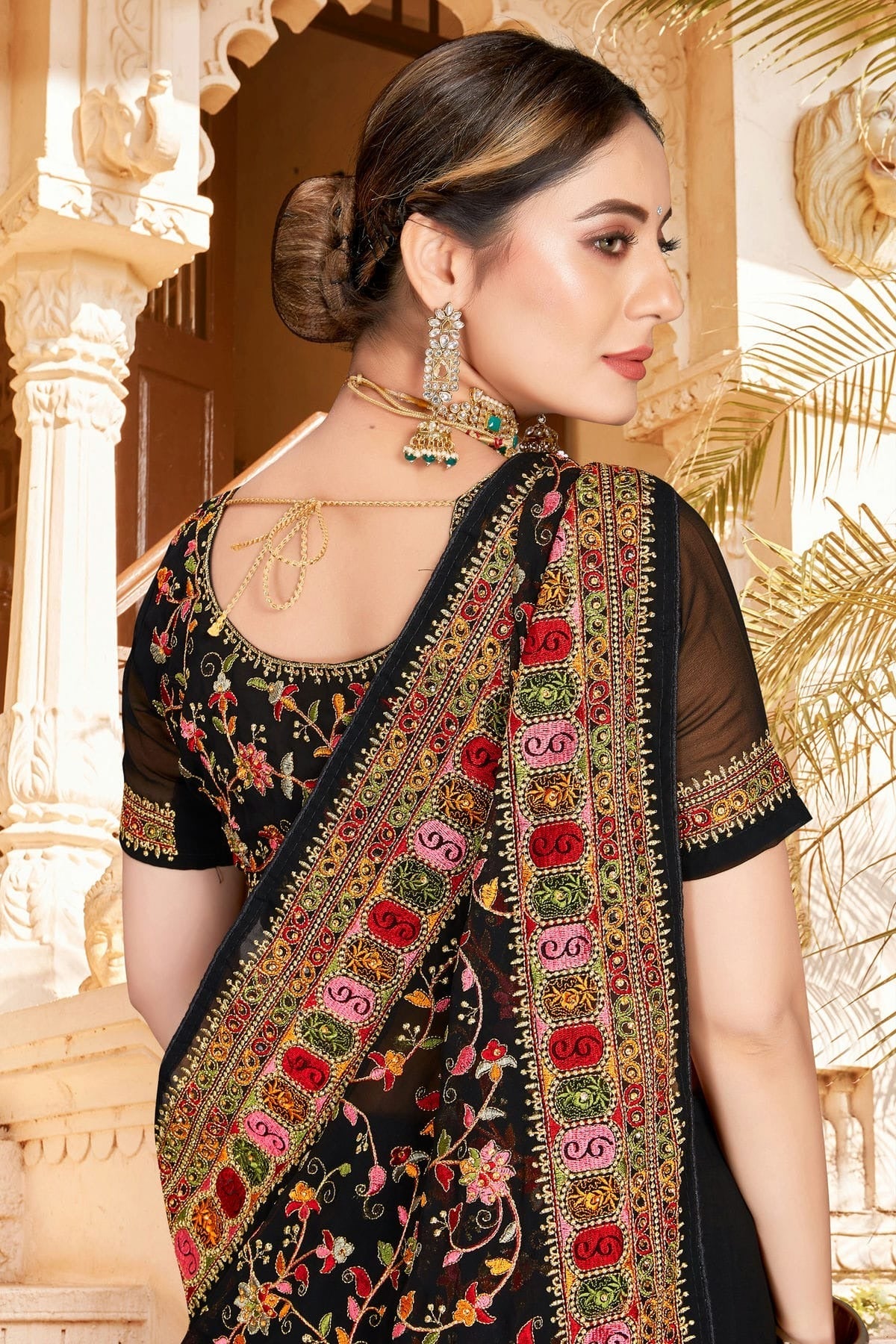 Drape yourself in timeless elegance with this saree crafted and enhanced with Georgette. Available in beautiful shades of Black, it is perfect for weddings, festive occasions, and parties. Pair it with statement jewellery for a complete traditional look.