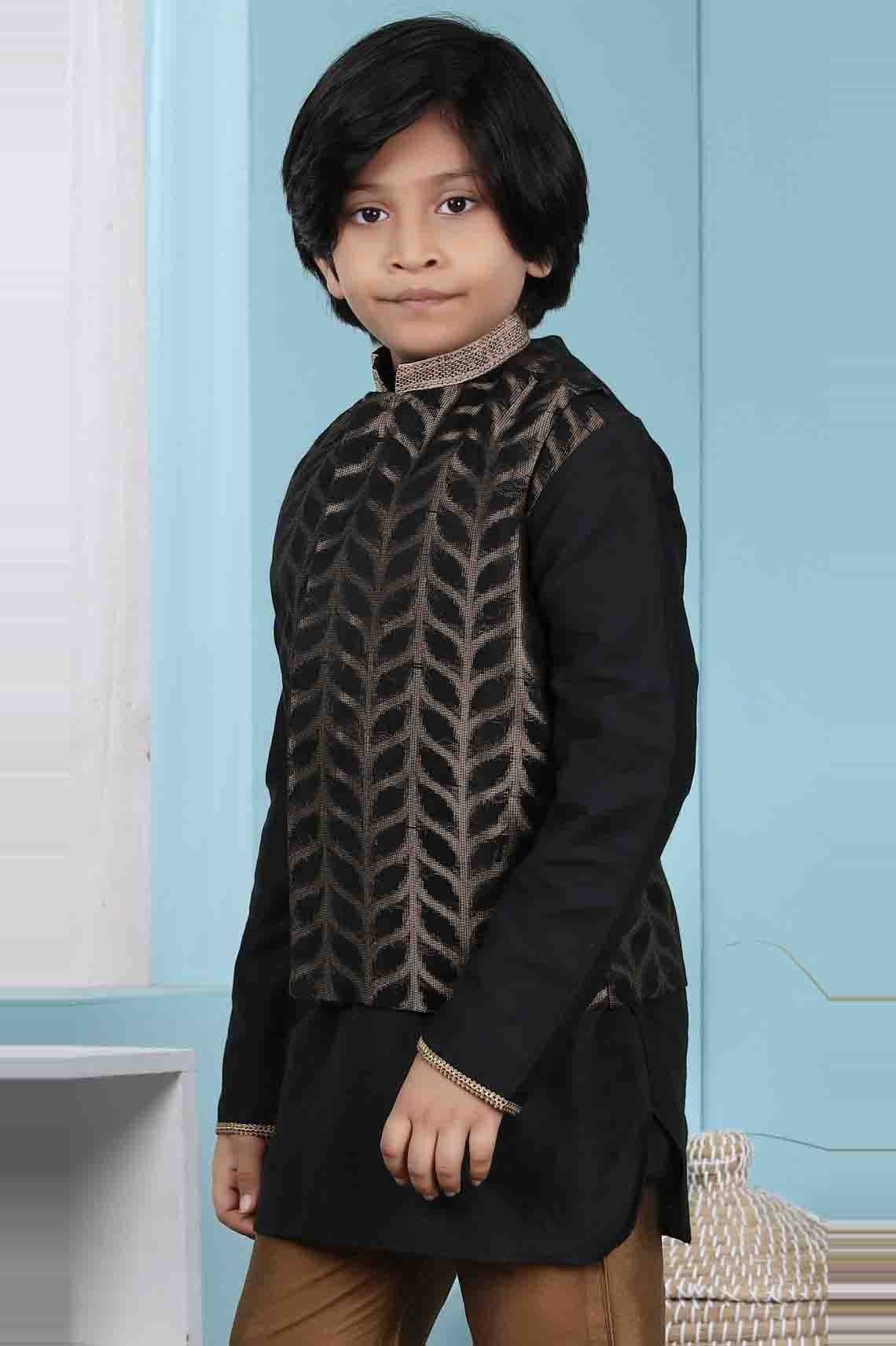 Keep it traditional with this kids boys’ wear enhanced with Silk. Offered in smart Black, it’s perfect for family gatherings, festivals, and cultural events.