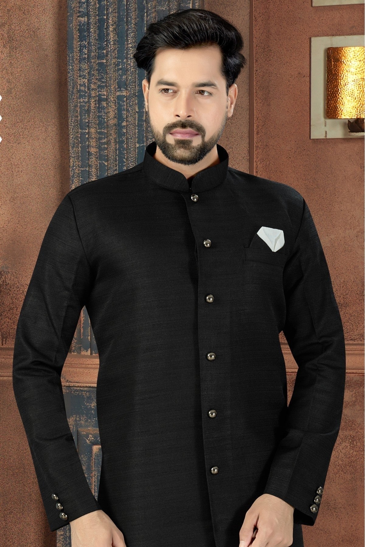 Redefine ethnic style with this mens wear made and decorated with Silk. Available in classy Black, it’s perfect for weddings, pujas, and festive occasions.