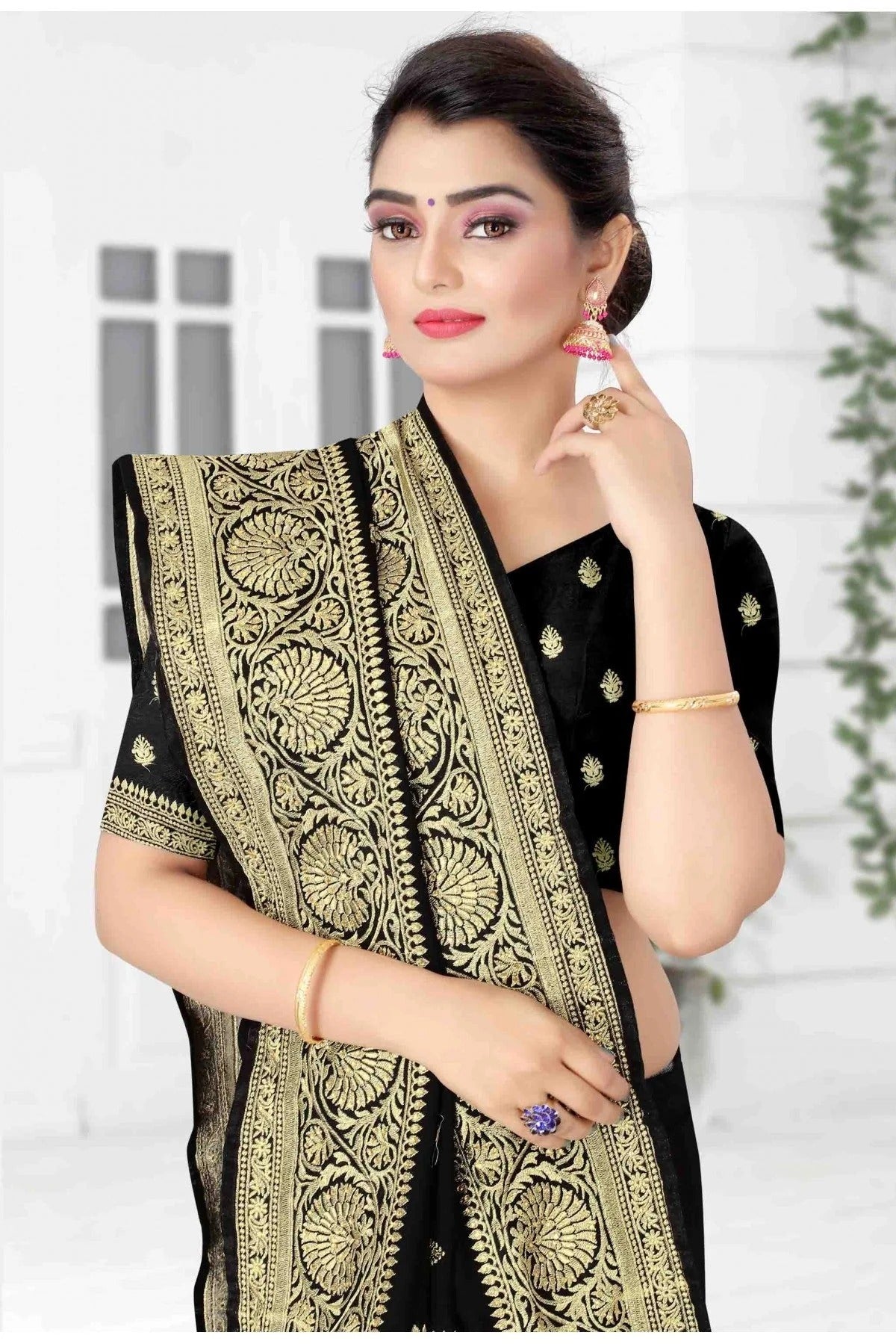 Drape yourself in timeless elegance with this saree crafted and enhanced with Vichitra Silk. Available in beautiful shades of Black, it is perfect for weddings, festive occasions, and parties. Pair it with statement jewellery for a complete traditional look.