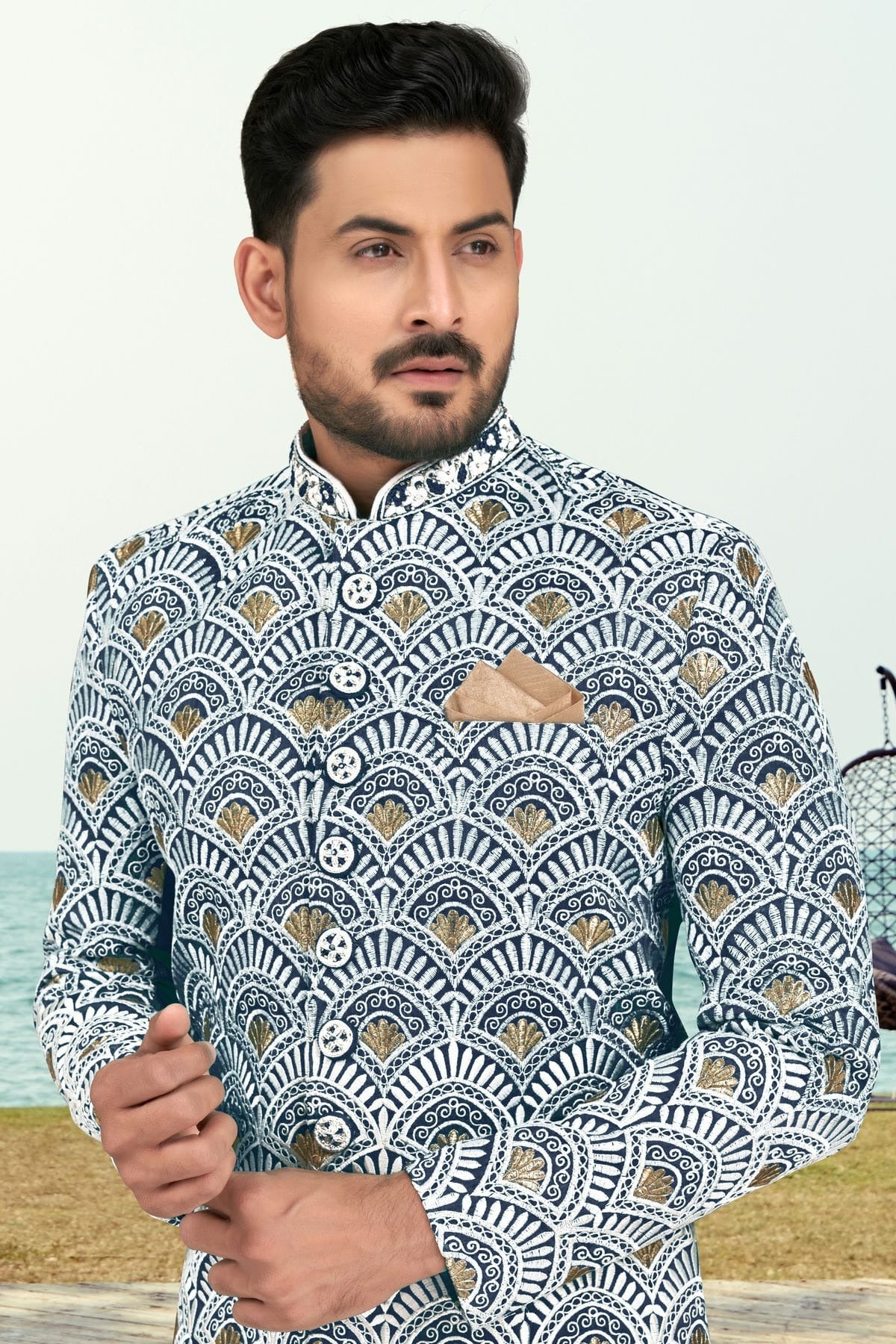 Redefine ethnic style with this mens wear made and decorated with Blue. Available in classy 34, it’s perfect for weddings, pujas, and festive occasions.