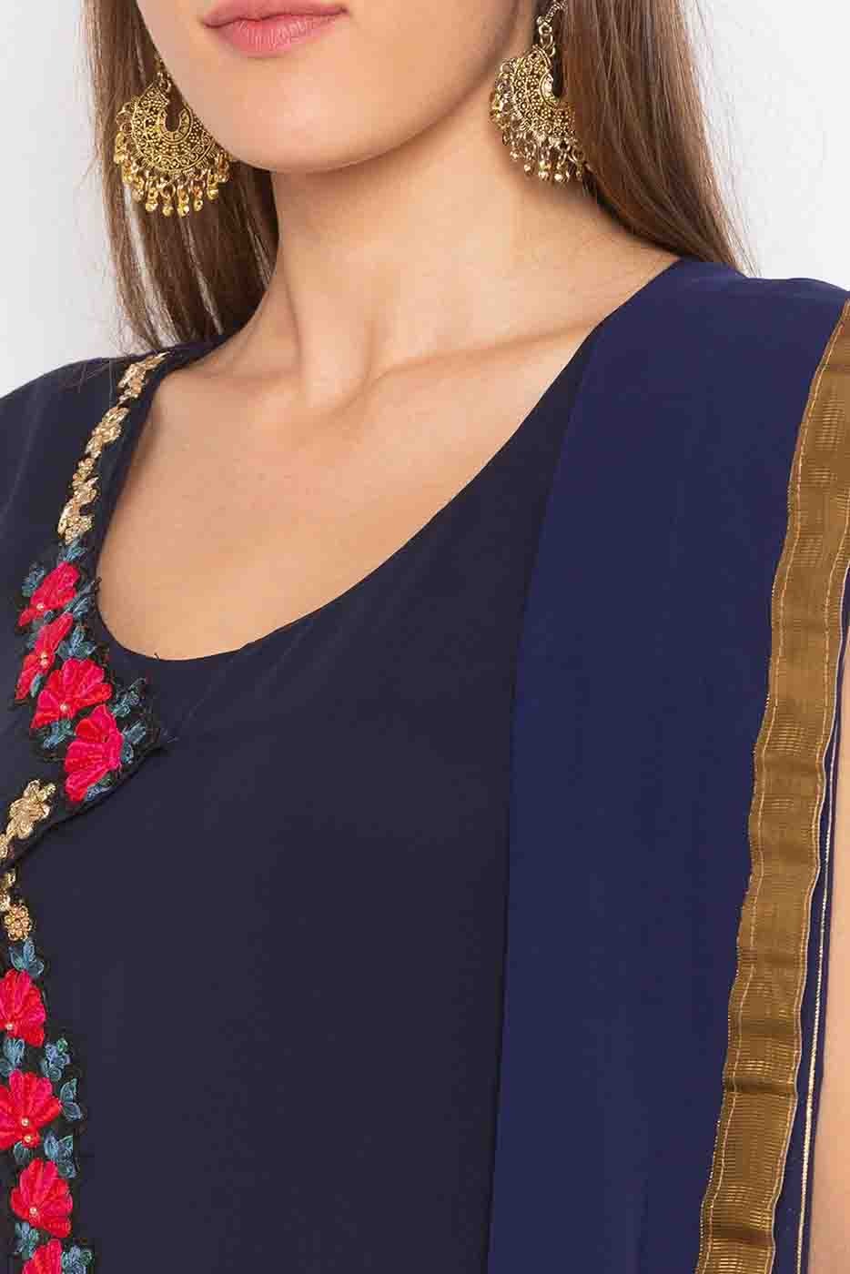 Blue Plus Size Stitched Cotton Embroidery Palazzo Pant Suit NCSS10710610