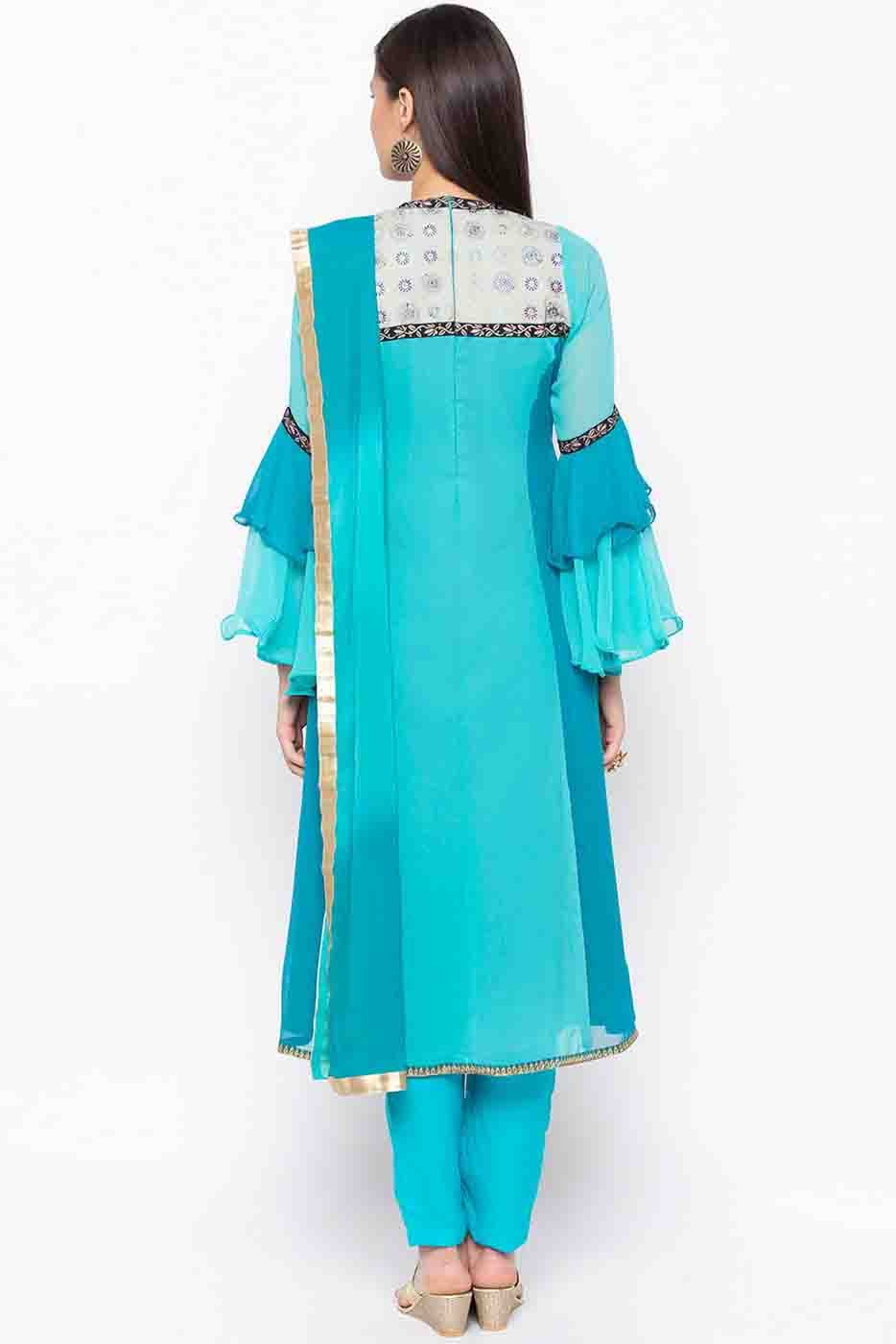 Grace meets comfort in this suit set designed with Blue. Offered in Georgette, this set includes a stylish kurta, bottom, and dupatta. Ideal for festive gatherings, weddings, or daily wear.
