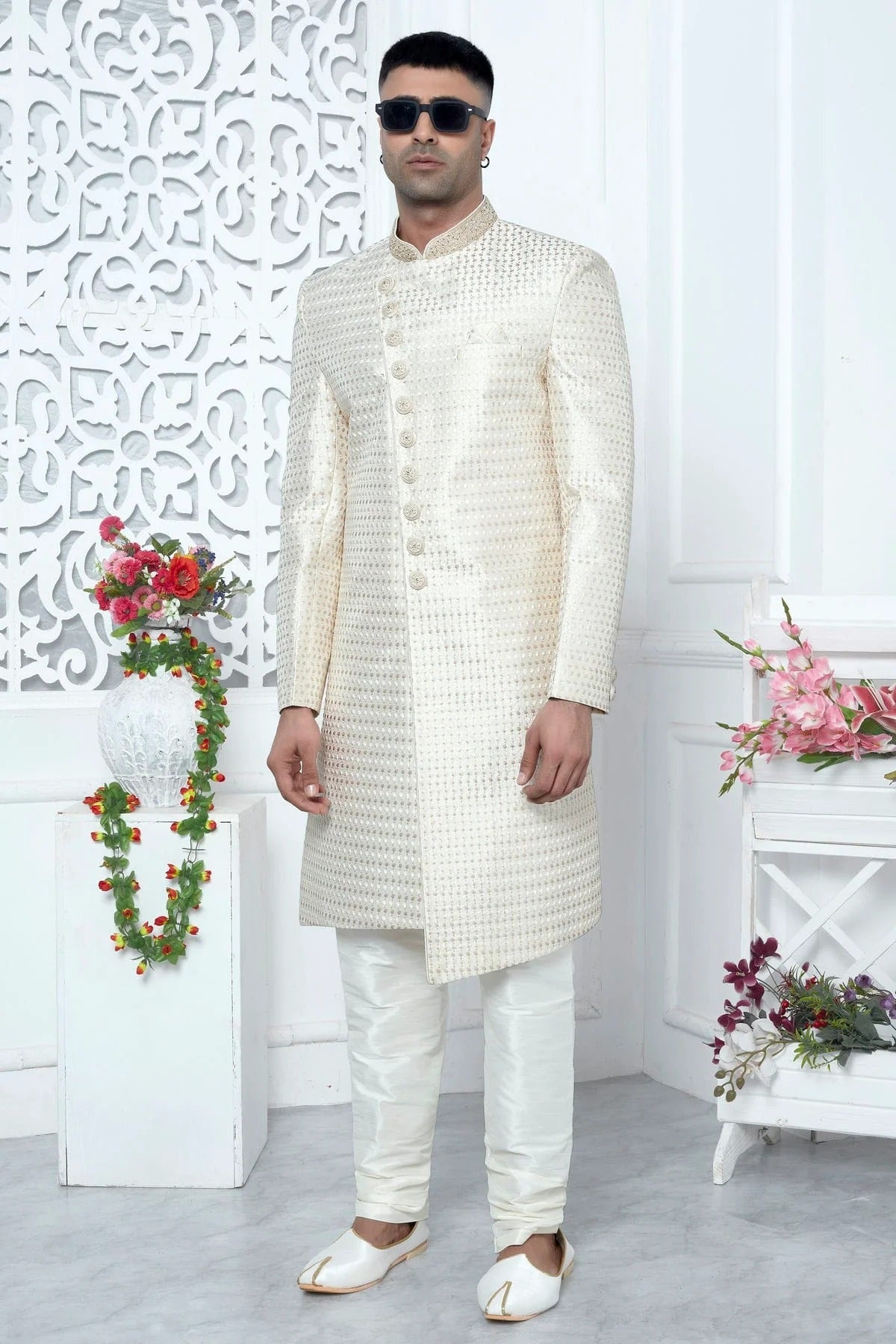 Cream Art Silk Sherwan With Churidar Pant NCSH12310309