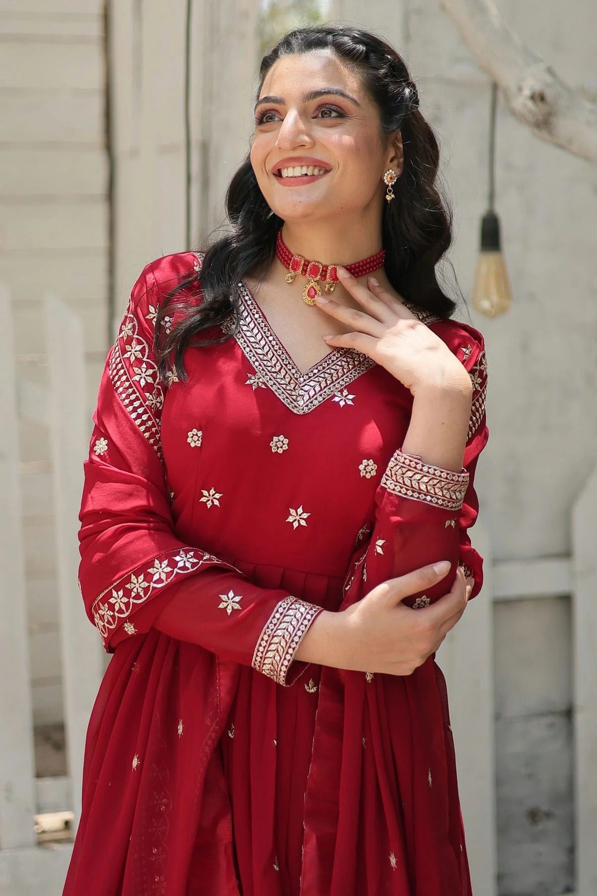 Make a style statement with this gown tailored and detailed with Faux Georgette. Available in Maroon, this gown is lightweight, stylish, and perfect for parties, receptions, or festive evenings.