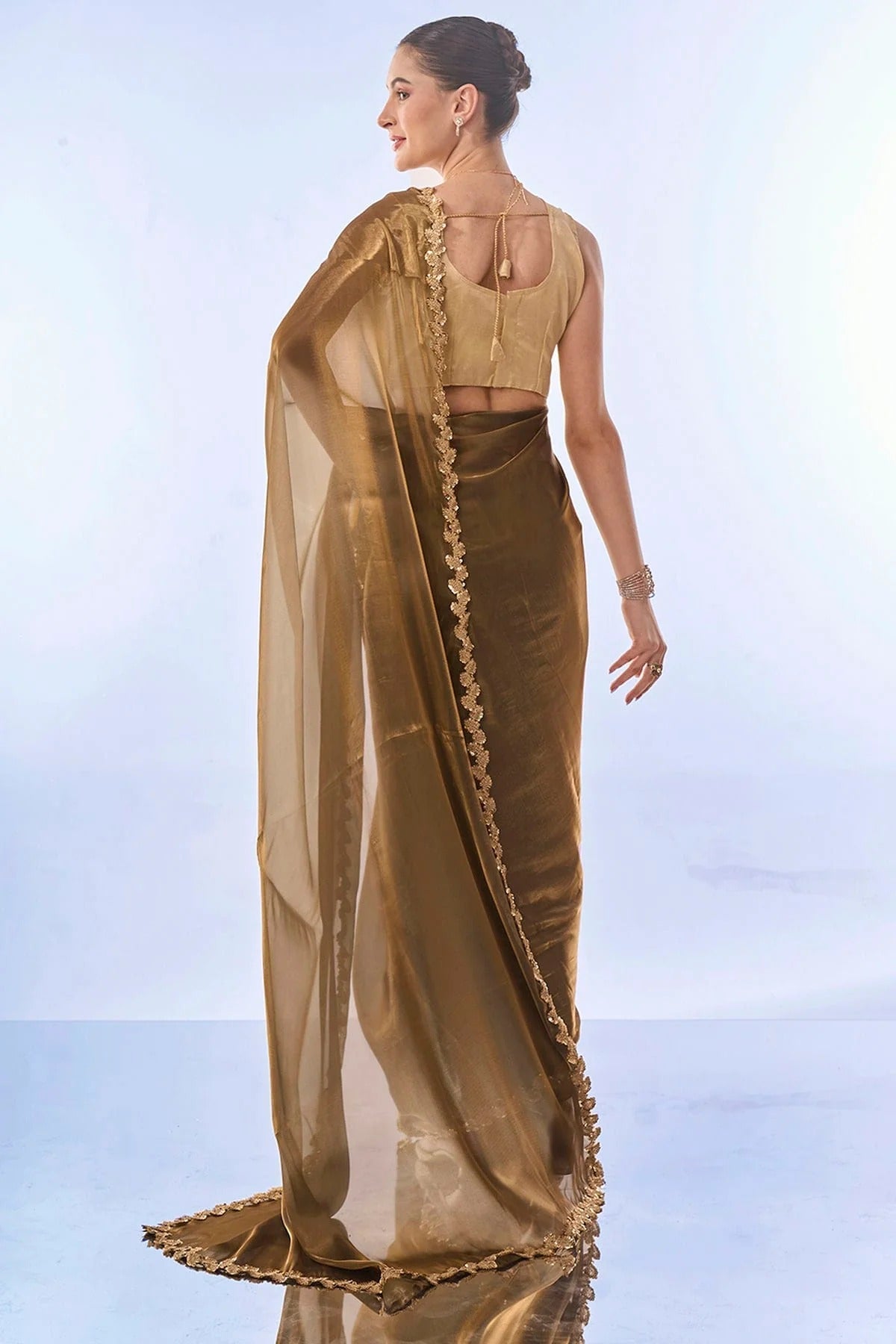 Drape yourself in timeless elegance with this saree crafted and enhanced with Jimmy Choo. Available in beautiful shades of Green, it is perfect for weddings, festive occasions, and parties. Pair it with statement jewellery for a complete traditional look.