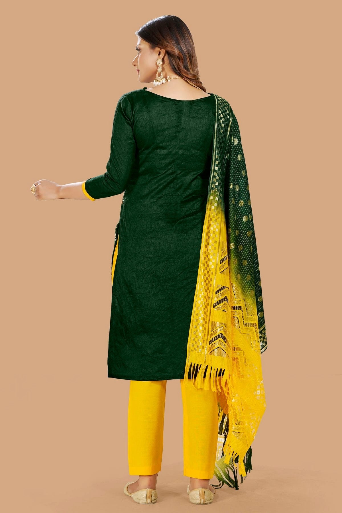 Green Unstitched Cotton Jacquard Straight Suit NCUS11610382