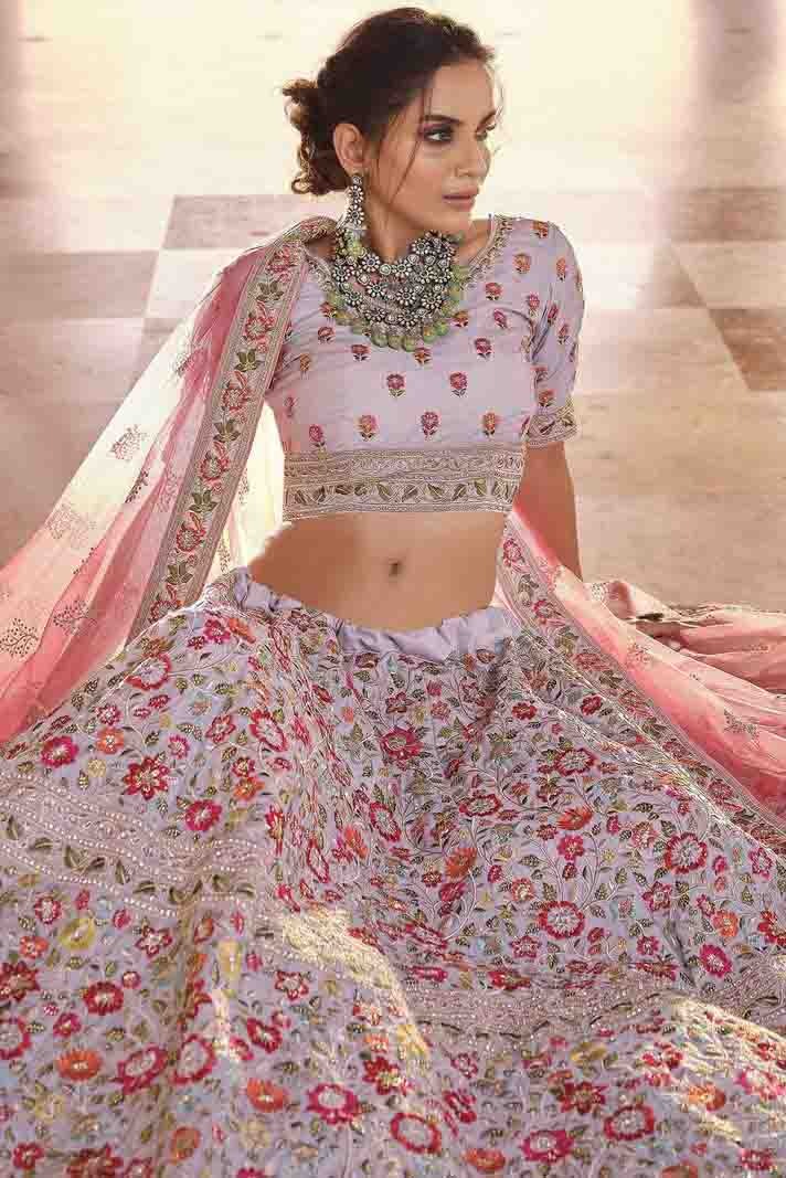 Grey Crepe Thread Lehenga Choli NCLC10810482