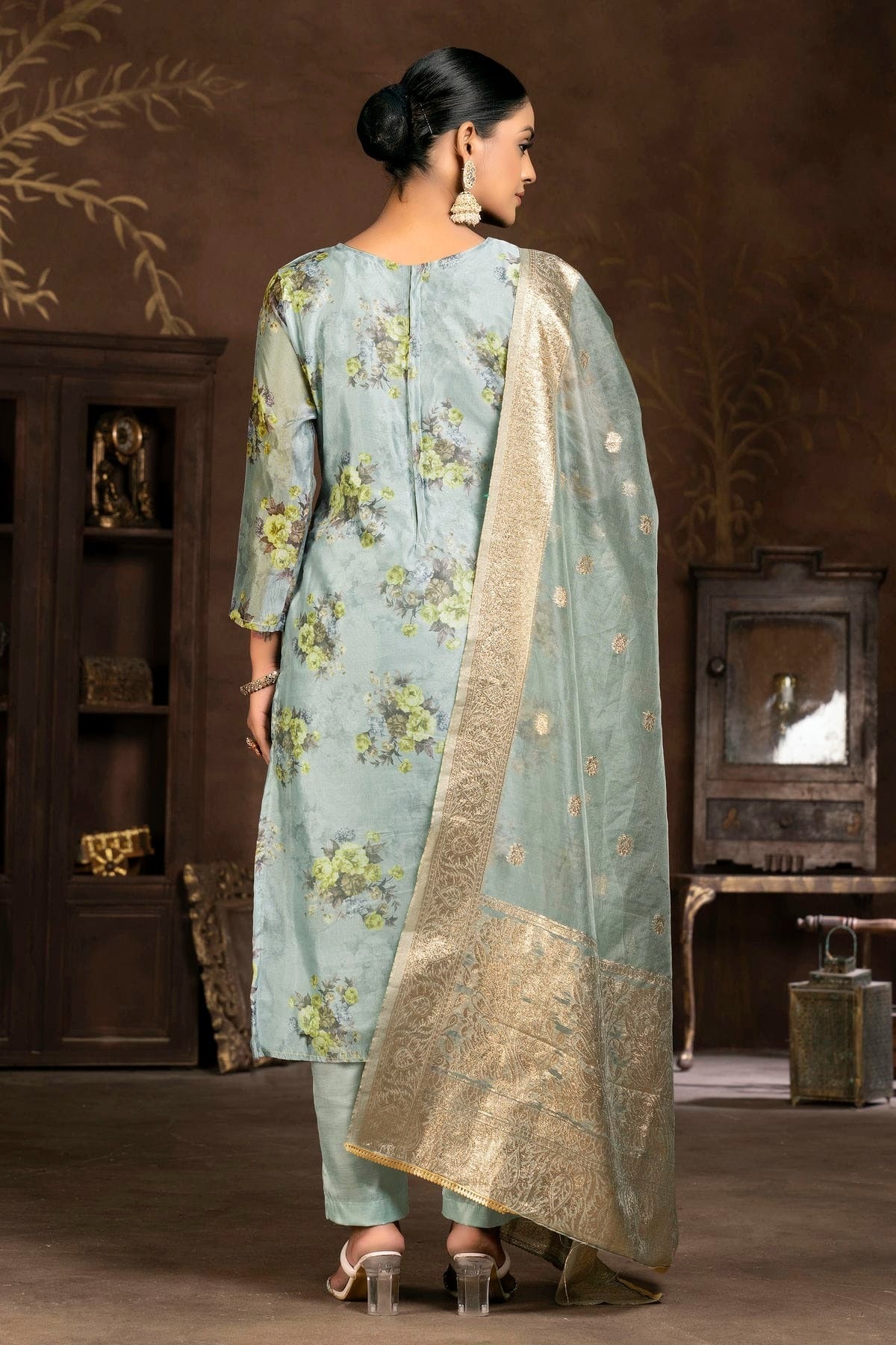 Grey Unstitched Organza Pant Style Suit NCUS11610174