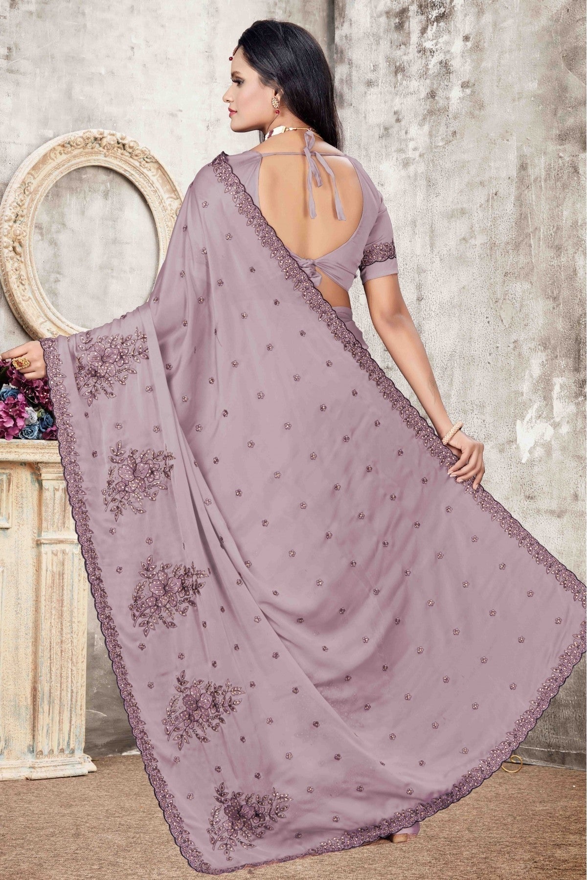 Drape yourself in timeless elegance with this saree crafted and enhanced with Rangoli Silk. Available in beautiful shades of Lavender, it is perfect for weddings, festive occasions, and parties. Pair it with statement jewellery for a complete traditional look.