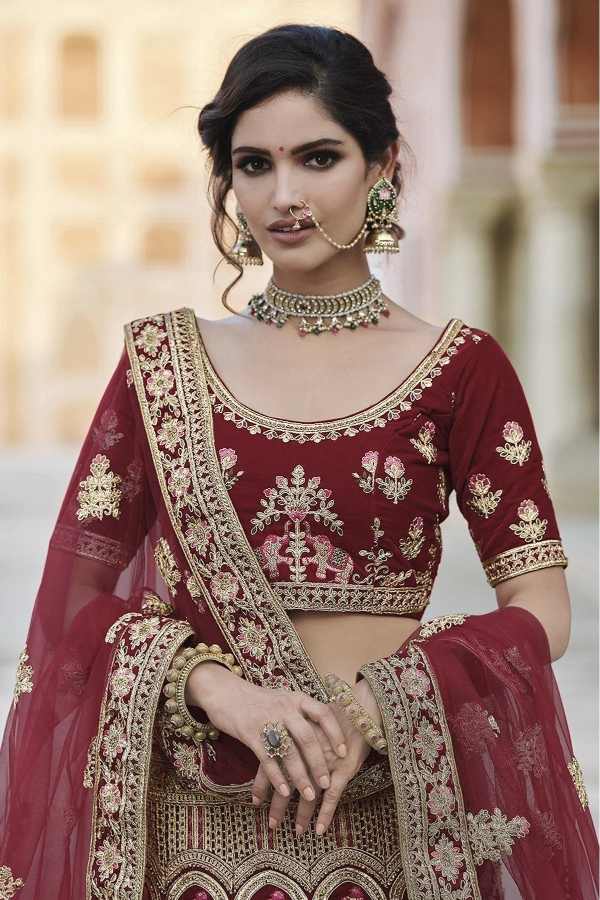 Maroon Velvet Hand Lehenga Choli NCLC10810392