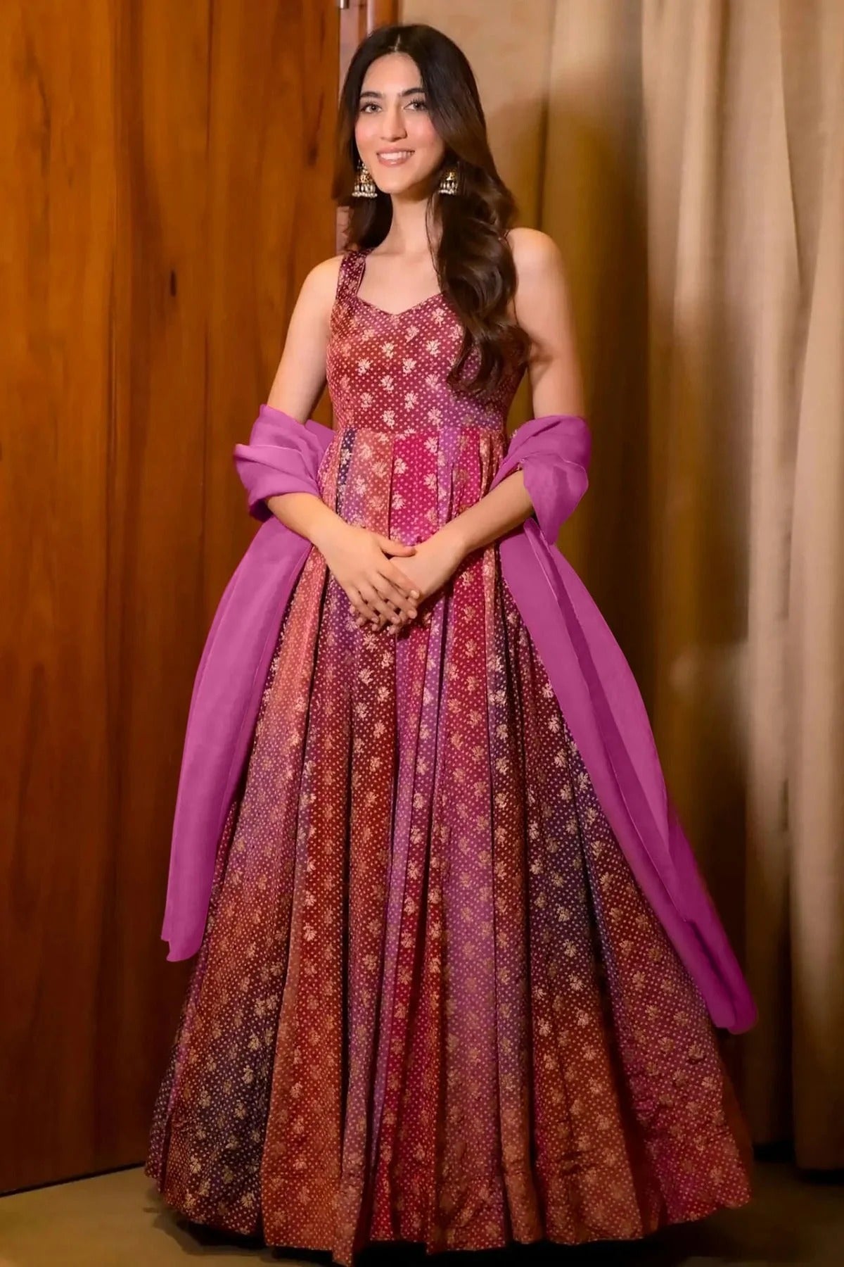 Make a style statement with this gown tailored and detailed with Chinon. Available in Multicolour, this gown is lightweight, stylish, and perfect for parties, receptions, or festive evenings.