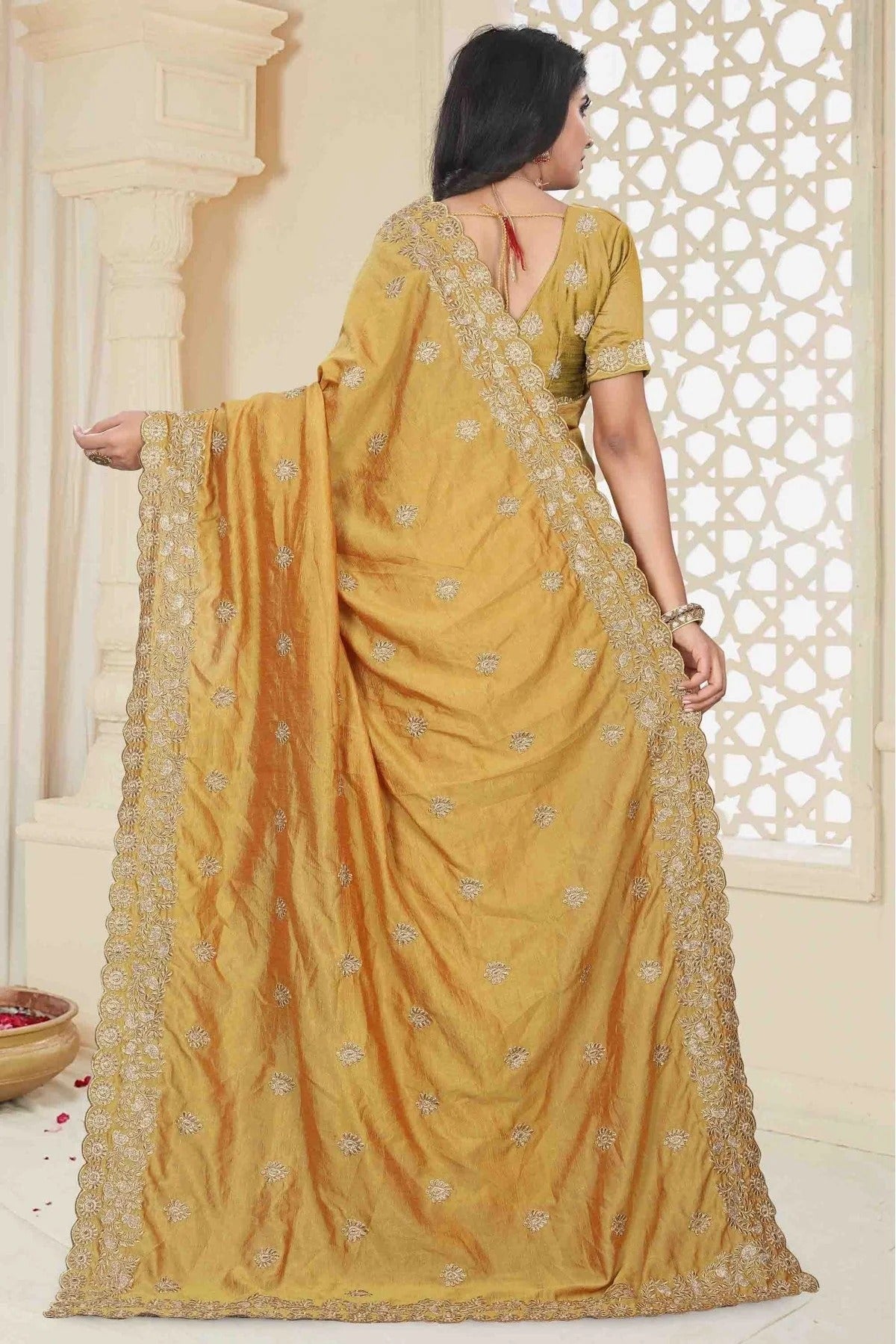 Drape yourself in timeless elegance with this saree crafted and enhanced with Silk. Available in beautiful shades of Mustard, it is perfect for weddings, festive occasions, and parties. Pair it with statement jewellery for a complete traditional look.