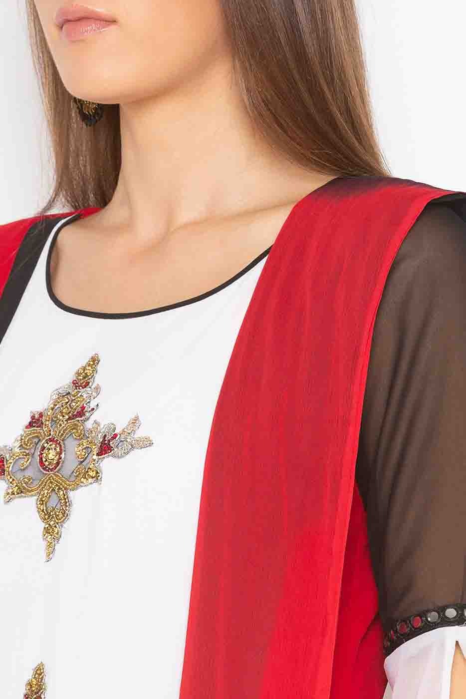 Off White Plus Size Stitched Georgette Embroidery Palazzo Pant Suit NCSS10710521