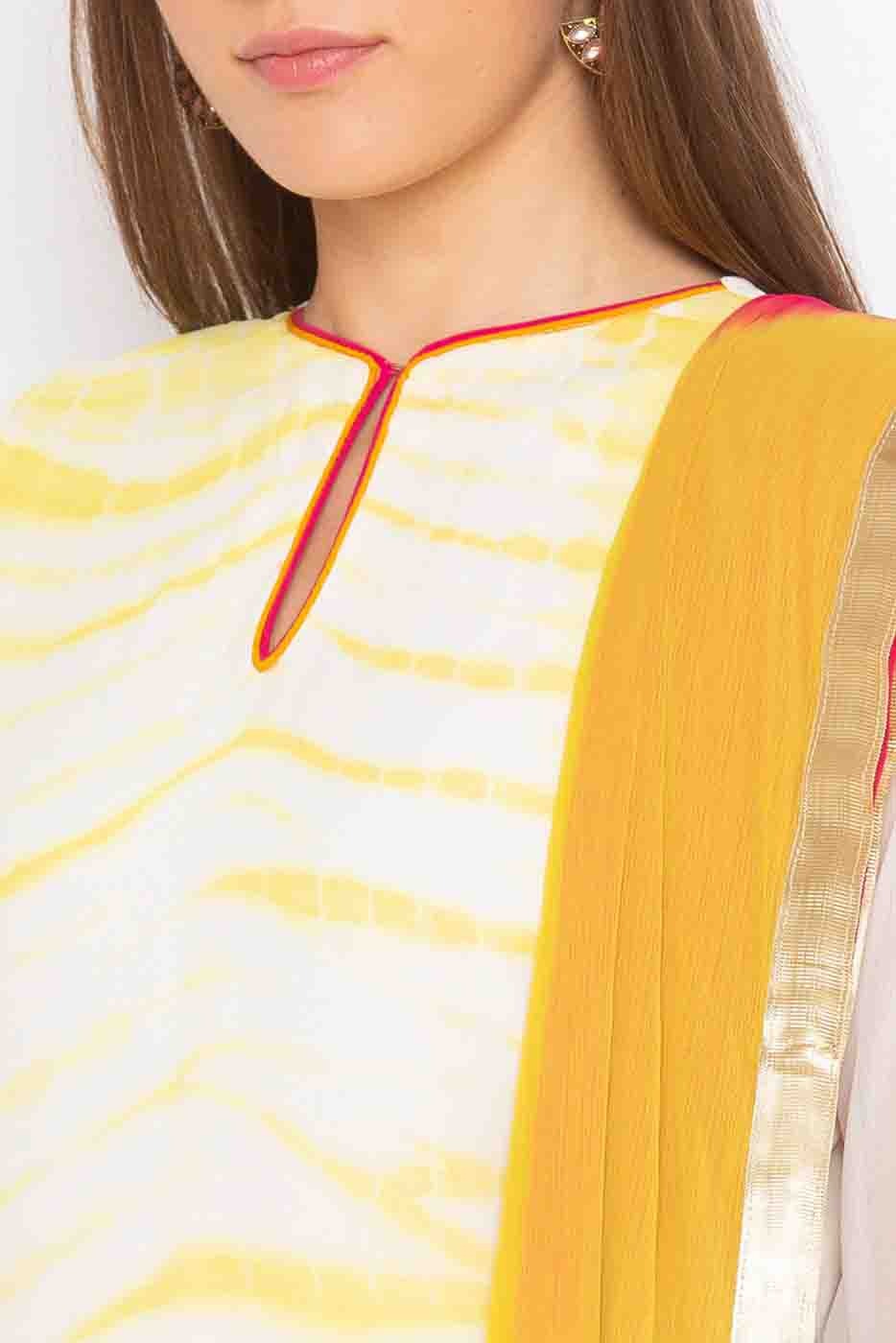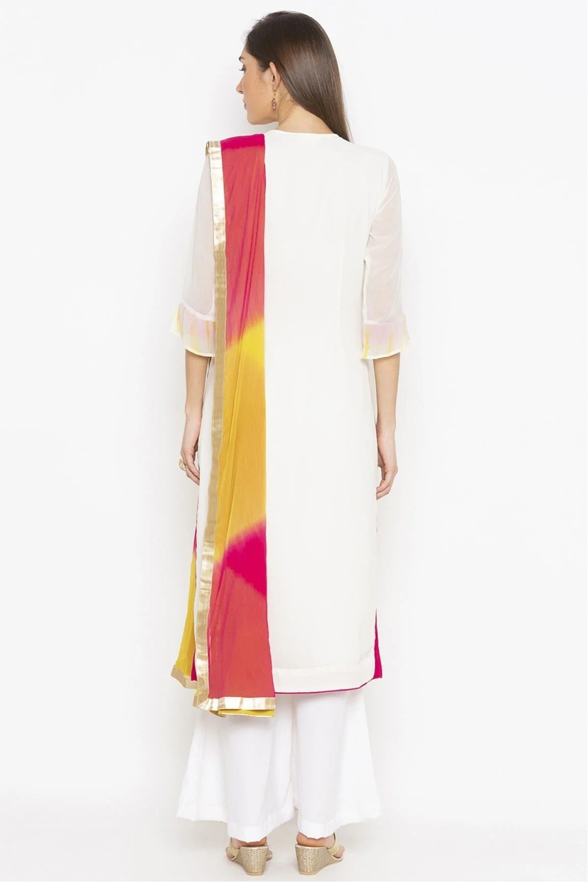 Grace meets comfort in this suit set designed with Off White. Offered in Georgette, this set includes a stylish kurta, bottom, and dupatta. Ideal for festive gatherings, weddings, or daily wear.