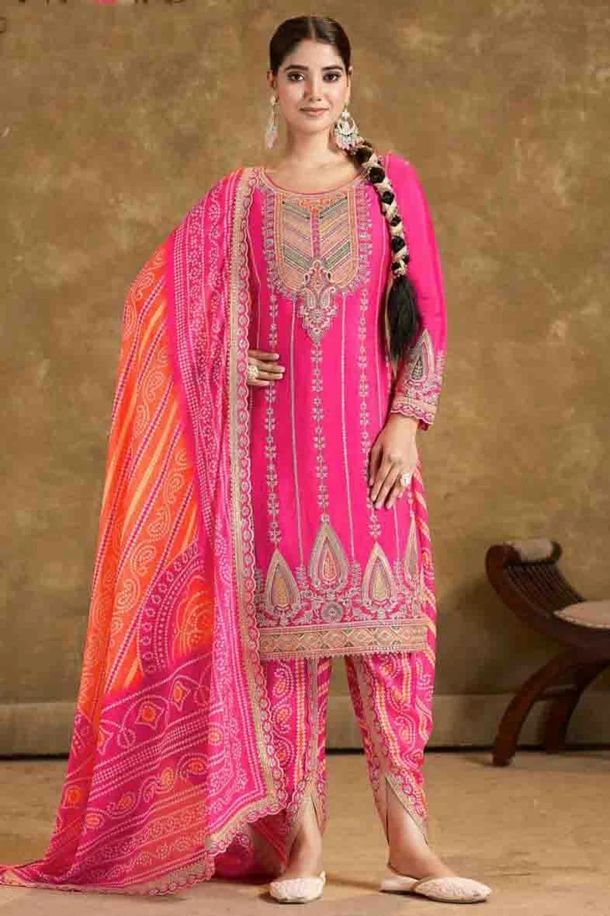 Pink Chinon Patiala Suit NCSM11410215