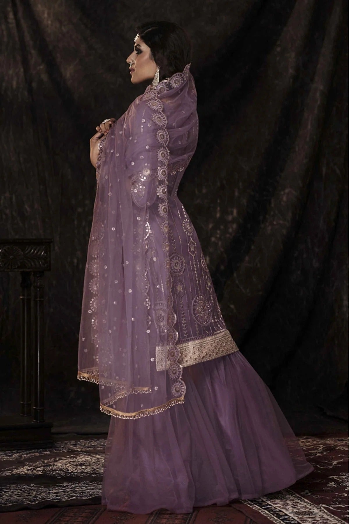 Purple Soft Net Sequins Sharara Suit NCSM10810369