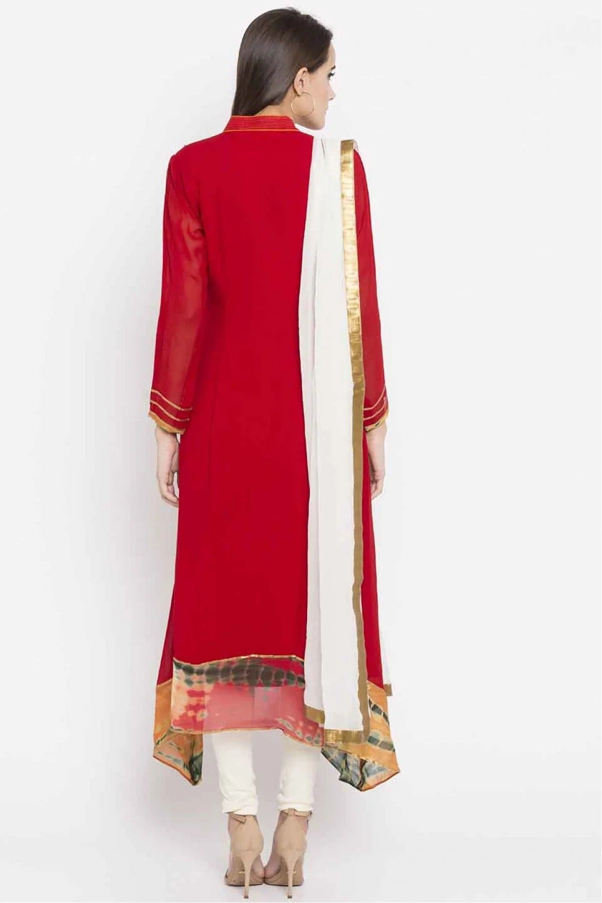 Grace meets comfort in this suit set designed with Red. Offered in Faux Georgette, this set includes a stylish kurta, bottom, and dupatta. Ideal for festive gatherings, weddings, or daily wear.