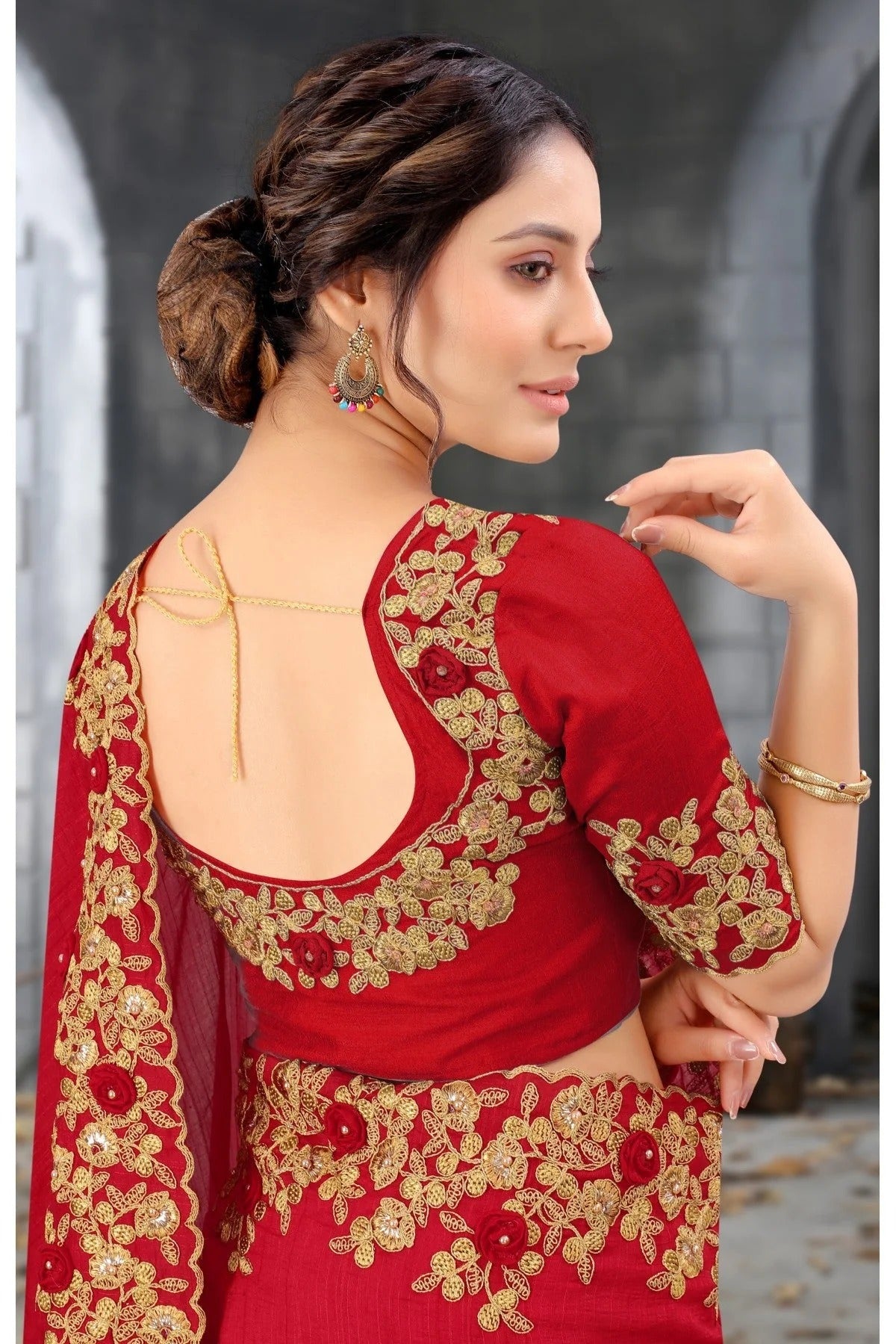 Drape yourself in timeless elegance with this saree crafted and enhanced with Silk. Available in beautiful shades of Red, it is perfect for weddings, festive occasions, and parties. Pair it with statement jewellery for a complete traditional look.