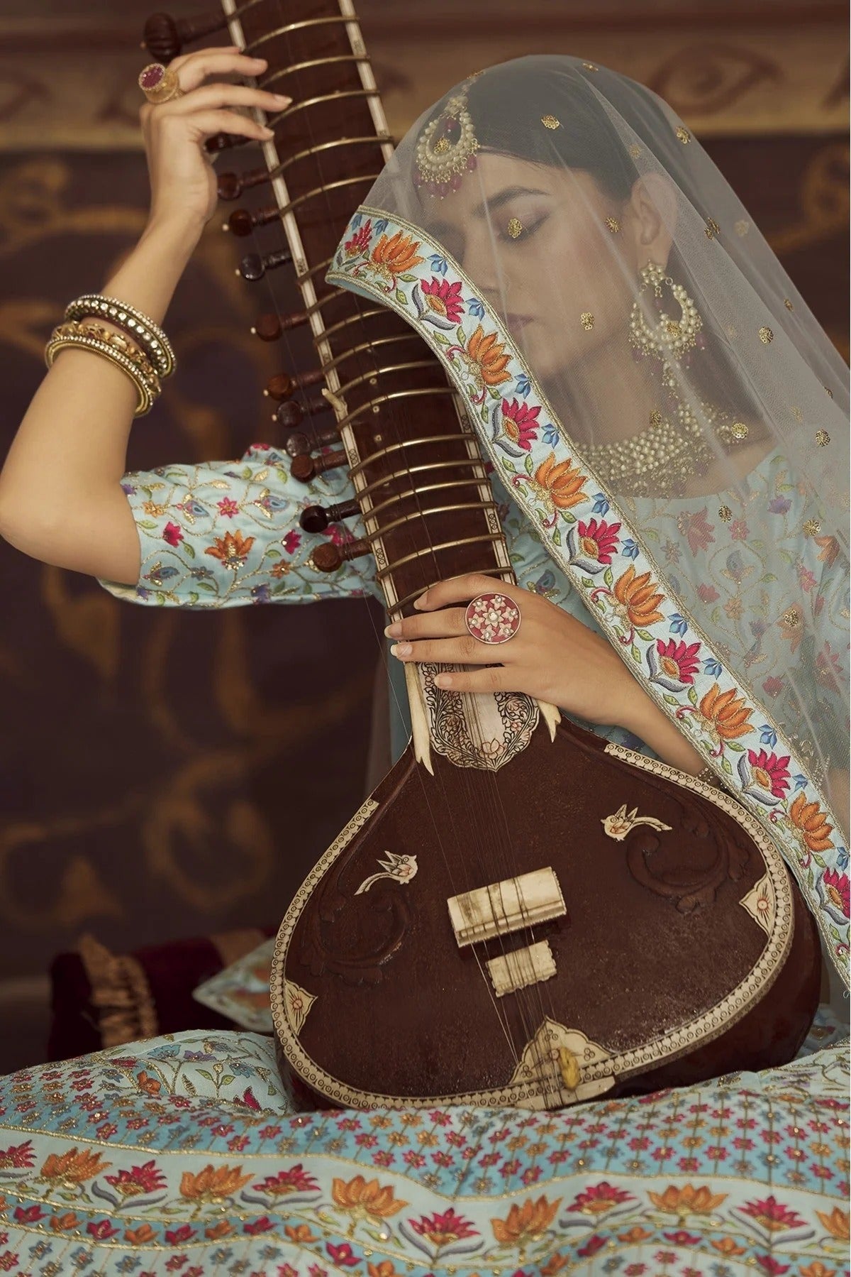 Turn heads in this stunning lehenga choli made with Art Silk. Available in elegant Sky Blue, the set includes a lehenga, blouse, and dupatta. Perfect for weddings, receptions, and grand occasions.